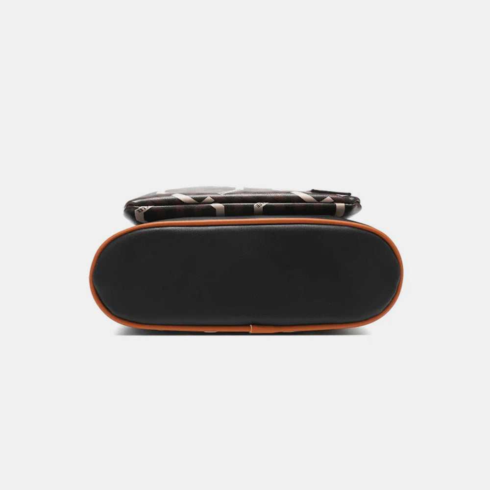 Enhance your style with the Nicole Lee USA Geometric Pattern Crossbody Bag, a perfect blend of modern design and practicality. Featuring a captivating geometric print and exotic textured accents, this chic crossbody bag offers a sophisticated look that's ideal for any occasion. Crafted from high-quality vegan leather, it ensures durability and ethical fashion. Stay organized with its well-designed multi-zip compartments, including a main center zip compartment, front zip compartment with additional pockets, and a back zip pocket. The adjustable shoulder strap allows for personalized comfort, making it a versatile accessory for daily use. With gold-tone hardware and a structured oval base, this bag is not just an accessory but a statement of elegance.