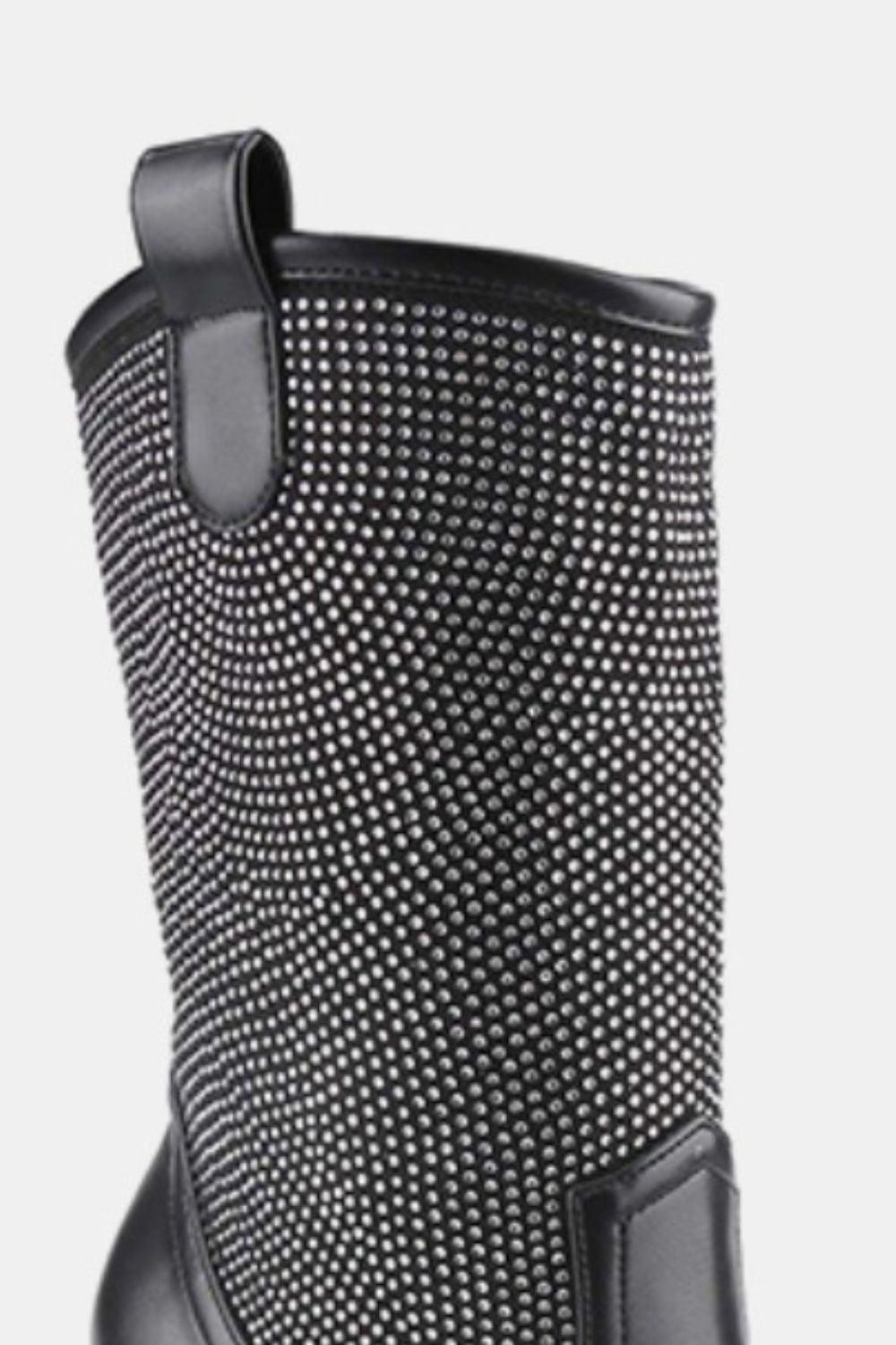 Upgrade your wardrobe with the Weeboo Chunky Heel Rhinestone Western Cowboy Boots, designed for those who love to blend glamour with Western style. These boots are crafted with dazzling rhinestone embellishments set against a classic cowboy silhouette, offering both style and comfort. Featuring a sturdy chunky heel, these boots are perfect for concerts, night outs, or any occasion where you want to make a bold statement. Available in sizes 6.5 to 11, these manmade imported boots are your go-to for all-day wear. Stand out from the crowd with these attention-grabbing boots that complement any Western-inspired outfit.